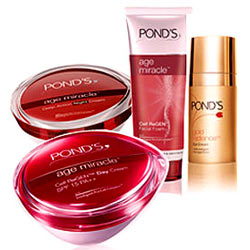 Order this Ponds Age Miracle Gift Hamper for Women that has Ponds Age Miracle Deep Action Night Cream 50 gm, Ponds Age Miracle Cell Regen Facial Foam 100 gm, Ponds Age Miracle cell Regen Day Cream SPF 15 PA ++ 50gm
