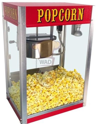 Popcorn machine (HP-6A). corn dosage: 8 once.. efficiency: 1/2 min / pan.. power: 220 v / 50 hz / 1.42 kw.. temp: 220 ~ 270 °c.. weight: 15 kg.. dim: 360 x 500 x 660 mm.