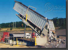 Contact SupplierThe Phelps Low Profile Landfill Trailer Tipper is designed for over-the-road transportation, when several major components are unpinned and removed comprising a second trailer load. Tipper is designed to raise itself in front for coupling to a trucktractor or converter dolly for relocation in the landfill. Time required for in-the-cell relocation is approximately fifteen minutes. This ease of movement is critical to landfill operation to save the costs of long distance pushing of materials away from tipper. All portable landfill tippers utilize a self-contained diesel powered hydraulic power unit.