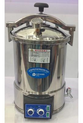 Portable pressure steam sterilizer pa-nj with novel appearance for sale -bluestone ltd. model: pa-nj18, pa-nj24 available volume: 18 liters, 24 liters portable pressure steam sterilizer with novel appearance instructions and features: 1. Fully stainless steel structure. 2. Hand wheel type of quick-open door structure. 3. Indicator light indicates working pressure. 4. Double scale indication pressure gauge. 5. Time scope: 0-60 min. 6. Automatically shut off with beep reminding after sterilization, 7. Electric heated. 8. Easy to operate, safe and reliable.