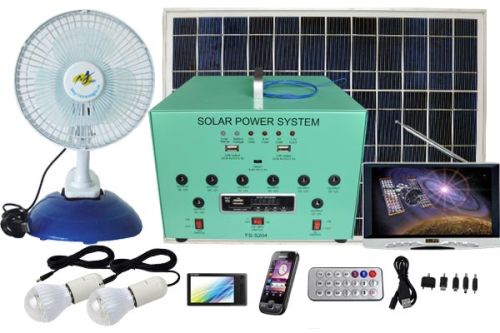 We are offering Portable Solar Power System. Model NO.: PS-S204 Application: Home Solar Panel: 18V50W Mono/Poly Solar Panel Battery Inside: 12V28ah Sealed Lead-Acid Battery Controller Inside: 12V3a Input: 18V Solar Panel Input Output Voltage: USB5v+12V DC for LED Light Lamps with System: 3W LED*4PCS, with 3m Cable Accesories: Phone Chargers, USB-DC Cable, Solar Cable Switches: 4 (Master +12V +5V USB H+MP3/FM Switch) MP3/FM Function: with MP3/FM Function Indicator: Solar Charge+Battery