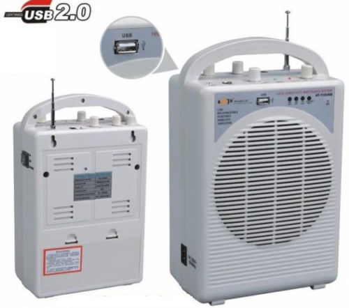 Feature:- Light Weight, Compact and rugged Enclosure VHF high band wireless MIC system Additional input for a wired microphone Tone control and independent volume control Line input Built in rechargeable battery and portable amplifier system USB Function Color Selection : White Black