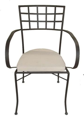 We are offering Powder Coated Wrought Iron Armchair Triqui38. Finish: Wrought iron armchair structure, solid iron, stackable system, antirust treatment, powder coating, with cushion. Dimension: Height 45/102 cm, width 52cm.