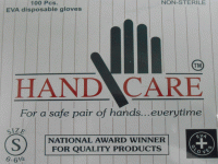 Details 100 PCS of Handcare Eva Powder free Disposable Gloves non-toxic Examination Gloves. Medical Grade Vinyl Gloves Powder free. Available in sterile and non-sterile forms in all sizes.EVA gloves are incinerable resulting to 99% water vapour.