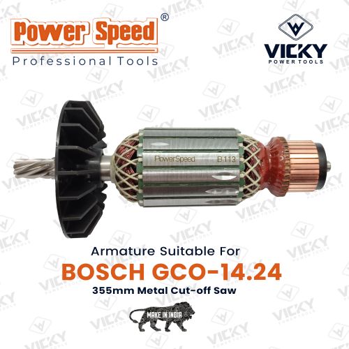 Suitable for 355mm Metal Cut-off Saw.PowerSpeed Armature For Bosch GCO-14.24, Manufactured By Vicky Power Tools.
