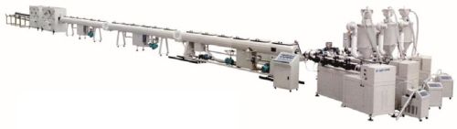 Three-layer co-extrusion die head. Thickness of every layer is uniform. Compared with normal pp-r pipe, it has many advantages, such as, high strength, small deformation at high temperature, low expansion coefficient. Comparing pp-r pipe it saves cost 5%-10%. The line adopts plc control system with hmi which is easy to operate and has function of linkage.