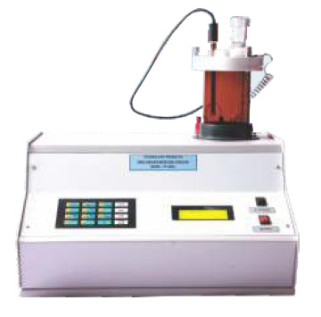 The instrument works on Coulometric Principle. Water is titrated by electrolytic generation of Karl Fischer Reagent within the reaction vessel. It is equipped with a generator which generates the Karl Fischer Reagent in the titration cell itself to react with the moisture present in the sample The main unit of the equipment consists of a built-in magnetic stirrer, necessary controls and a microprocessor based circuitry of advanced type with feather touch membrane key pad. An Error Indicator indicates the defect in vessel charge or generator solution and electrodes if any. On entering the requisite data on the key pad and pressing the START key, the instrument performs all the functions automatically and presents the final result on the digital display in terms of total moisture in the sample in Milligrams or PPM or Percentage as desired. The VM-III requires no calibration or calculations of the Titre Factor and is always ready to accept the samples.