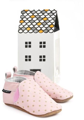 Pretty Brave Slip Ons Blush with dots Gorgeous Leather Baby Shoes by pretty brave. Beautiful packaging as displayed. Slip on style in blush with spots