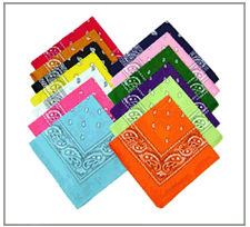 We are one of the leading manufacturers & exporters of bandanas from India. These are available in variety of designs, sizes & are also manufactured as per client's specifications. Material Cotton, Polyester, Silk, Chiffon in size 55x55 cms, 65x65cms or Any size advise by buyer.