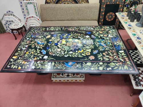 Black Marble Inlay Art Dinning Table 6ft X 4ft