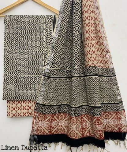 Cotton Suit Material With Linen Dupatta, Feature : Anti-Wrinkle, Comfortable, Easily Washable