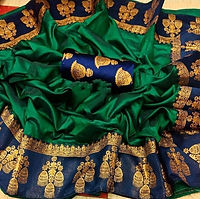 Dark Green Satin Silk Saree, Technics : Machine Made