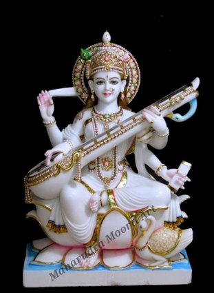 Printed Marble Saraswati Mata Statue, Packaging Type : Thermocol Box