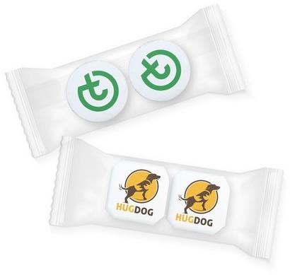 Contact SupplierFor a few cents you can have your brand printed directly onto our made in the USA sugar-free peppermints. What a fresh and tasty way to show off your logo or say thank you, congratulations, happy holidays, fund raising awareness ribbons, andor product launches. The ideas are endless. Two mints are individually packaged in a clear cello pack, so nothing distracts from your brand. Note: Each box contains 1000 two-packs. Available in a fishbowl (400pcs): $5.00(V). 2 14" W x 1316" H