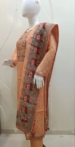 Printed Peach Cotton Kurti Pant Dupatta Set?