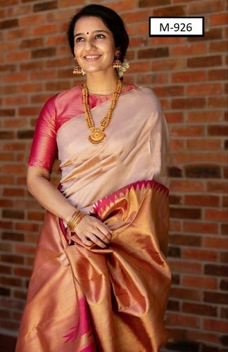 Peach Kanjivaram Soft Silk Saree, Occasion : Party Wear, Wedding Wear