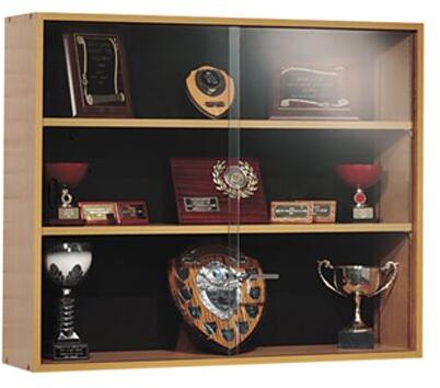 PRODUCT: Du7101 - Display Unit CODE: DU7101  DESCRIPTION  • Ideal for displaying cups and shields. • Made with laminated panels and sliding glass doors with locking device, available in two sizes. • Includes two adjustable shelves, complete with hanging brackets. • Interior depth