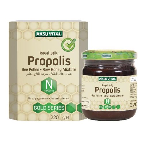 propolis content: average resinous compounds, balsams, wax, aromatic oils, bee pollen, flavonoids, amino acids and b vitamins. The most important group of flavonoids in propolis compounds (flavones, flavanols, and flavanones,), are various phenolic and aromatic.
