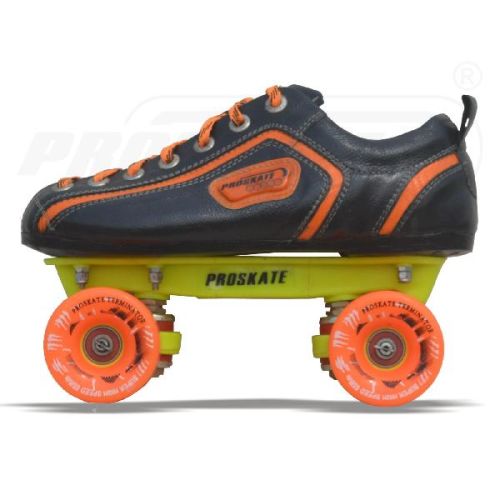 PROSKATE TERMINATOR 65 QSS 80 Shoe : Hand made, Genuine leather upper , leather Sole, Comfort lining, Special laces.. Frame : Engineered Plastic, 15° Speed Action, Clip Axle. Wheels : 62 MM, 84 A, Super High Speed Road Rink Wheel . Bearing : ABEC 3,5,7,9 & Ceramic balls (White Black) Racing series. Size : Junior 8 to Senior 12 (18 Sizes).
