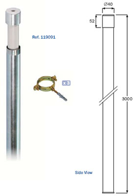 DESCRIPTION : • Mechanical protector for down conductors of external lightning protection systems, placed at ground level. • Suitable for the protection of external down conductors, as recommended by the UNE 21.186 and NFC    17.102 standards. • Length 3 m.• Model made with hot galvanized steel, containing Ø 32 mm inner tube made of PVC. • Includes 3 clamps, plugs and dowel screws.