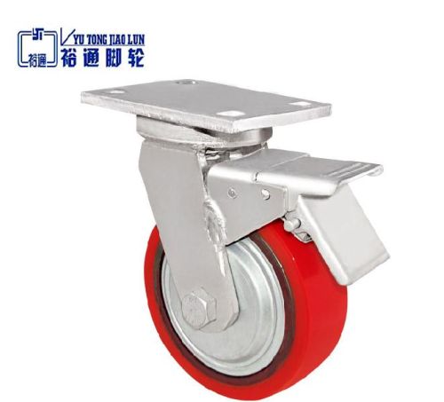 Pu brake caster heavy duty pucaster series: bracket thickness:9mm polished galvanized surface treatment lasting light more antirust riveting technology high loading capacity wide useful environment name material wheel dia (mm) wheel width (mm) loading height (mm) loading capacity (kg) bearing offset plate size plate thickness holader thickness heavy duty series pu with iron
