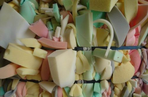 PU FOAM SCRAP SMALL PIECIES MIXED COLORS BALES. Post industrial. Waste from the production of sponge. Can load in 1x40HC container aprox. 23 MT (±