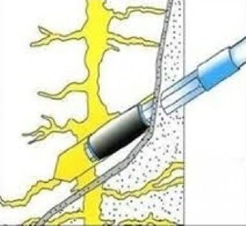 PU Injection Grouting Polyurethane Injection grouting is a technique that involves the injection of expanding polyurethane to cut-off water flow through concrete joints or cracks or to fill voids under slabs or behind concrete walls. The grout is injected under low/high pressure through a pre-drilled hole.Â