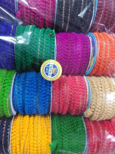 Polyester Pum Pum Lace, Color : Golden