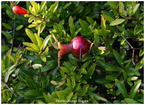 Contact SupplierPunica granatum is a shrub or small tree, 5-8m. high, considered to be a native of Iran, Afghanistan and Baluchistan, found growing wild in the warm vallyeys and outer hills of the Himalaysa between 900 and 1800m and cultivated throughout India. Bark smooth, dark grey; branchlets sometimes spiniscent; leaves 2.0-8.0cm long, oblong or obovate, shining above; flowers usually scarlet red, sometimes yellow, 3.7-5.0cm long and as much across, mostly solitary or 2-4 together; fruits globose, crowned by persistent calyx, with a coriaceous woody rind and an interior septate with membranous walls, containing numerous seeds; seeds angular with a fleshy testa with is red, pink or whitish.