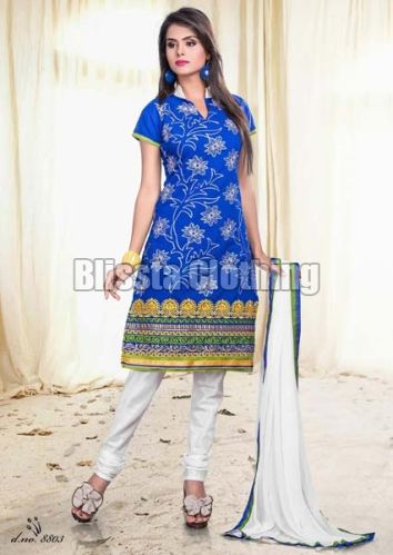 Item Code : KPARI303 Top Fabric : Chanderi Top Color : Blue Bottom Fabric : Santoon Bottom Color : White Dupatta Fabric : Chiffon Dupatta Color : White Inner : N/a Occasion : Traditional Wear, Party Wear, Bridal Wear, Wedding Wear Sleeves : 3/4th Sleeves Time to Ship : 4-5 Working Days Wash Care : Dry Wash Only Packing Details : Standard Packing