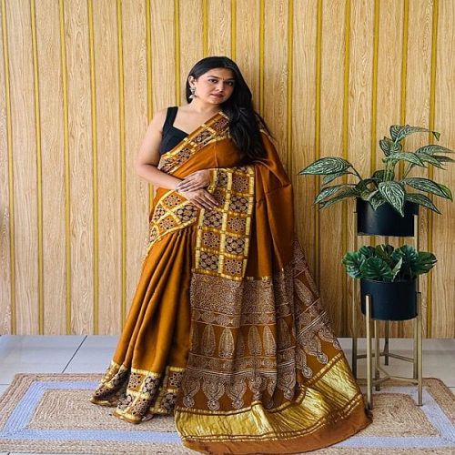Contact SupplierWe offer a stunning Mustard Printed Pure Modal Silk Ajrakh Hand Block Saree from India, featuring a generous length of 6.3 meters. Made from high-quality Modal Silk, this saree comes in a beautiful Mustard packaging and includes a matching blouse piece. The blouse stitch type is unstitched, perfect for customization. Embrace the rich Indian heritage with the intricate Hand Block pattern, adding a touch of elegance to your wardrobe. Ideal for manufacturers and suppliers in the ethnic fashion industry, this saree is a must-have for those seeking authentic Indian craftsmanship.