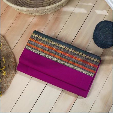 Hand Woven Purple Cotton Saree, Occasion : Casual