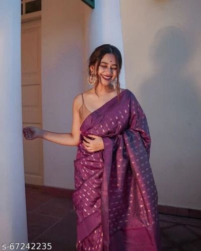 Purple Staple Semi Silk Saree, Age Group : Girls