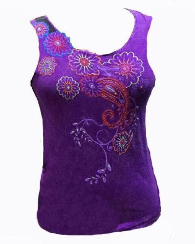 100% Cotton, Purple color Tank top with full hand embroidery on front part.Different sizes and colors are available also custom design also welcome.