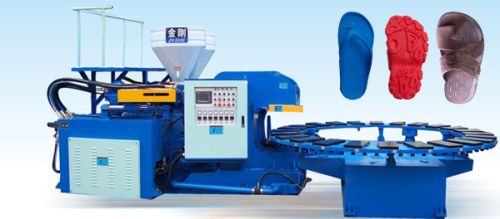 We are offering pvc air-blow slipper injection moulding machine. TPR/PVC sole/slipper air blowing injection machine, Single color air blowing sole machine This Line is suitable for sing color TPR/PVC Soles, especial for PVC/TPR Soles. Also can produce soft toy after modify a litter bit on the machine. * High efficiency and energy-saving. Feature: A. 2 sets of independent circuit system to provide strong injection pressure and flow B. Powerful clamping force, no pressure leakage. C. Excellent quality and efficiency guaranteed.
