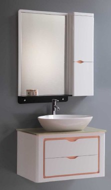 We are offering pvc cabinet. 1. Material: pvc panel (15mm for door panel , 12mm for side panel) 2. Silver mirror-5mm with 15mmframe,ceramic basin and main cabinet. without pop-up ,faucet and drainer 3.soft closing hinges and sliding rails 4. Installation type: wall mounted 5. Packing: main cabinet: foam board and plastic films inside ,strong carton outside ceramic basin: foam board and plastic films inside ,strong carton outside mirror: carton inside ,wooden case outside 6. Lading capacity: about