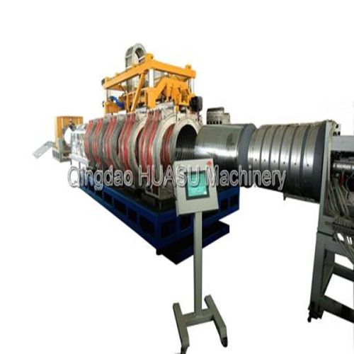 in order to meet the demand of plastic market, huasu company designed and developed this upvc double wall corrugated pipe extrusion line sbg1000 by absorbing advanced technology from foreign countries plastic machinery industry. This upvc double wall corrugated pipe extrusion line is the latest study achievement in the plastic extruding area. The whole extrusion line is suitable for the high speed extrusion of upvc material. The complete line adopts one conical twin-screw extruder directly extruding and forming technology, human-machine interface control system. It makes high automation degree, reliable quality and stable production become true. And this pipe production line wins our home and abroad customers�good reputation.