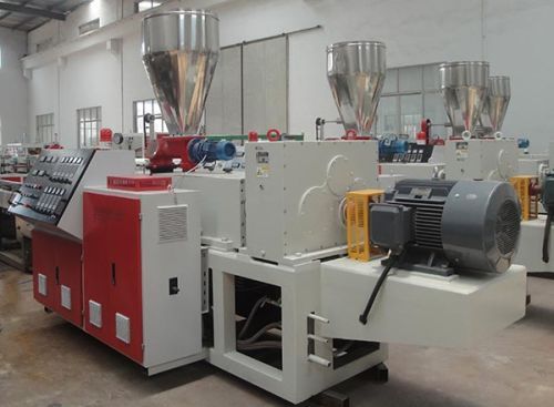 This producion line includes conical twin screw extruder, vacuum forming tank, spray cooling tank, pipe haul off machine, pipe cutting machine,pipe stacker. The extruder and haul off machine purchase the world famous brand inverters; vacuum pump and haul off machine major parts all purchase high quaility products. Haul off machine with the type of two caterpillars, three caterpillars, four caterpillars, five caterpillars, six caterpillars, eight caterpillars and the cutting machine purchase the blades cutting and planet cutting. Pvc pipe production line also purchase the length counting and cutting system.