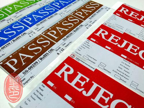 We are offering various types of quality control stickers such as qc pass, qc reject or pass & reject sticker and etc in different shapes, colours and design of quality product. These kinds of sticker are generally used in pharmacy, food, cooking oil, drink, electrical application, school and office.