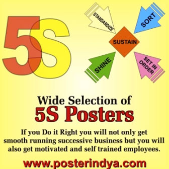 We are influential supplier of 5s & quality posters, which describes the whole management system of work place and helps you to get a flawless successive business. Our 5s & quality posters describe how items are stored and how the order is maintained. We are providing 5s & quality posters in english, 5s & quality posters in hindi, in india and other global clients. The results you can expect from a five s program are: improved profitability, efficiency, service and safety. It is typically the first lean method which organizations implement.