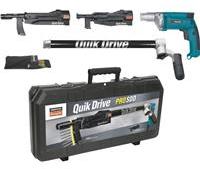 Makita-powered system for driving Quik Drive collated screw strips into drywall, flooring, decks, etc. Drives 1-14" to 3" screws rapidly to save time and energy. Narrow profile allows easy driving in corners and other tight spots. Kit includes Makita screw gun, 6.5A, 2500 RPM screw gun with Quik Drive attachment, bits, 22" extension bar for easier driving in floors and ceilings, screw strip quiver, and hard plastic storage case.