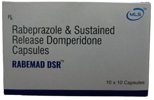 Contact SupplierRabemad DSR is composition of Rabeprazole + Domperidone is used in the treatment of gasreoesophageal reflux disease and peptic ulcer disease. Domperidone is a prokinetic which works on the upper digestive tract to increase the movement of the stomach and intestines, allowing the food to move more easily through the stomach. Rabeprazole is a proton pump inhibitor (PPI) which works by reducing the amount of acid in the stomach which helps in the relief of acid-related indigestion and heartburn.