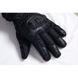 - FeatureBlack colour Outer shell made of Nylon Taslan fabric Cow leather with Nylon moulded fiber Lining made of 100% polyester with Hyporra (waterproof) and thinsulate Amara palm with touchscreen first finger