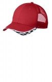 Port Authority® Checkered Racing Mesh Back Cap. C903 Rev up your look in this cap that captures the energy of racing with colorblocking, checkers, piping and breathable mesh. Fabric: 100% cotton twill front panels, 100% polyester mesh mid and back panels Structure: Structured Profile: Mid Closure: Hook and loop