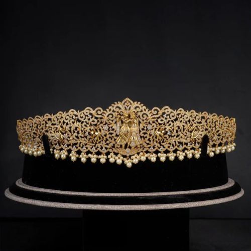 Contact SupplierRadha Krishna CZ vaddanam is a beautifully crafted piece perfect for your traditional attire. This CZ vaddanam is crafted with 92.5 silver with gold plating, which makes it a timeless piece that will never lose its shine. The cubic zirconia stones and seed pearls elevate the intricate Radha Krishna design of the vaddanam and make it a unique piece that will make you stand out.
