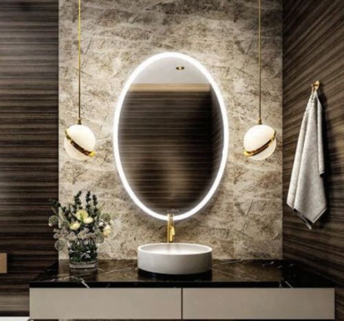 The Radiance mirror is an outwardly stunning oval piece that, when lit up, emits spectacular reflections all around. Its elegant design and radiant glow make it a centerpiece that enhances the ambiance of any room, adding both beauty and brilliance