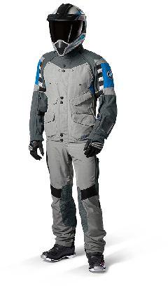 Offroad suit with waterproof insert ProTechWool, a performance fabric made from wool and polyamide with a carbon finish Wind and waterproof, comfort-mapped BMW climate membrane insert that adapts to your body Reflective material on the jacket sleeves and trousers Colours and sizes: Blue/Grey (46–66, 98–118,