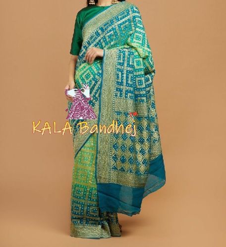 Pure Georgette Banarasi Bandhani Saree, Pattern : Random Junglo Design