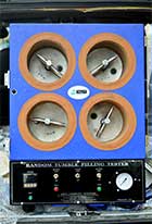 Random tumble pilling tester determines the resistance of textile fabrics both woven and knitted to the formation of pills and other related surface changes. The pills that occur during normal usage of fabric are simulated in test condition. This is done by random rubbing motion by tumbling test specimen in cylindrical test chamber with cork liners. The degree of fabric pilling is evaluated by comparing test specimen with standard photographs .They are rated 1-5 – 1 being very severe pilling and 5 no pilling.