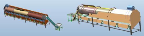 Raw Cashew Nuts are fed into a feeding hopper which is a temporary storage of raw cashew nuts, keeping a buffer to feed the machine as per the requirement. It feeds the nuts into the bucket elevator automatically. An automatically inclined bucket elevator is provided for easy transportation of nuts to the drums. It is fabricated to conform to the international food grade equipment standards. Calibration and Cleaning of nuts further takes place in the cylindrical drums.